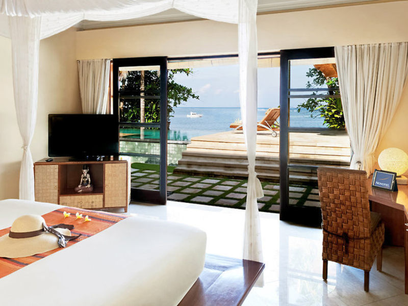 Poloha: Přímo na pláži Benoa. V důsledku přílivu přílivu je přístup při vysokém přílivu možný pouze přes schodiště. Restaurace a zábavní zařízení jsou nedaleko. Kyvadlová doprava (součástí) v nákupním centru Bali Collection probíhá několikrát denně. Přeneste přibližně 30 minut.