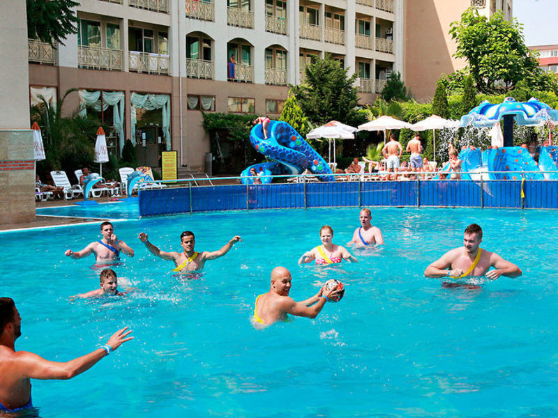 Vybavení: Hotel má 354 pokojů, vleky, recepci, internetový koutek (za poplatek), Wi-Fi ve společných prostorách (v ceně), bufetová restaurace s terasou, restaurace s bulharskou kuchyní, bar (10.00-23.00). Mimo 2 bazény se sladkou vodou s barem u bazénu (09.00-18.00 hod.) A sluneční terasou. Plážové židle a slunečníky u bazénu jsou zahrnuty na pláži za poplatek. Ručníky jsou k dispozici za zálohu.