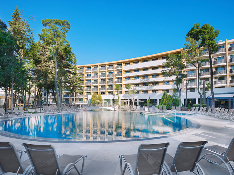 All Inclusive: Bufety. 1 x večeře v restauraci À la carte na celý pobyt včetně. Místní a vybrané mezinárodní alkoholické a nealkoholické nápoje 10.00-24.00. Pozdní snídaně stoupačky 11-12:00. Snack bar 12:00-15:00 (oběd), 15:00-17:00 (dort, zmrzlina, ovoce). Každý 2. kde. Gala večeře, 1 x wkd. Italské a bulharské večer.