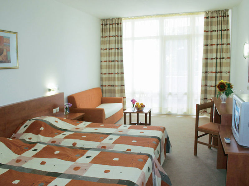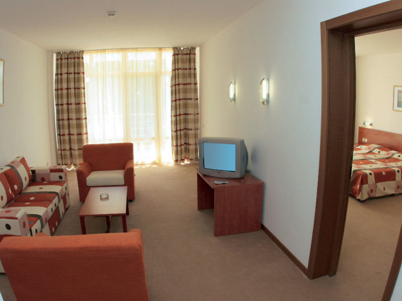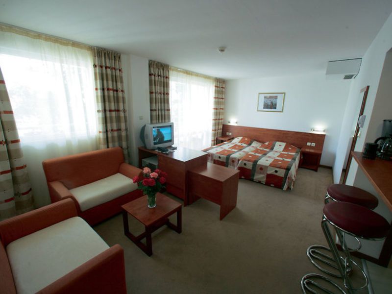 Komfortně zařízené a vybavené pokoje satelitní TV, klimatizace, telefon, minibar, vysoušeč vlasů, sprchový kout, WC a balkon. Apartmány mají: extra ložnice, nebo mají stejné vybavení jakoPokoj.