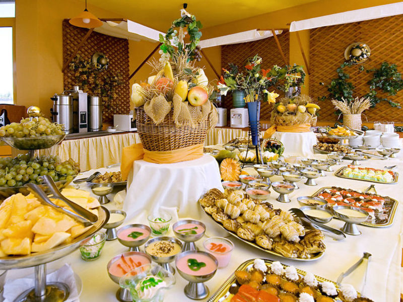All Inclusive: Všechny pokrmy ve formě bufetu. Oběd a večeře v hlavní restauraci nebo tematických restauracích. Místní alkoholické a nealkoholické nápoje od 10:00 do 24:00. Čaj a káva od 10:00 do 18:00 v lobby baru a snack baru. Občerstvení od 11:00 do 15:00, stejně jako zmrzlina a koláče od 15:00 do 18:00 v snack bar u bazénu.