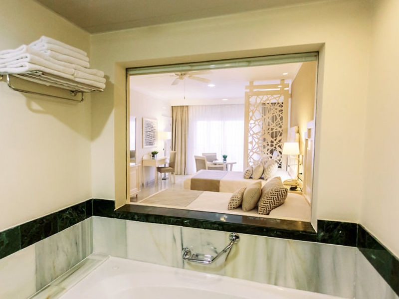 Bydlení Deluxe Junior Suites (A1-3A, cca 45 m2) o Butler služby (na vyžádání), polštářů, posezení, kávovar, minibar, klimatizace, stropní ventilátor, trezor, satelitní plazmovou TV, WI-FI (v ceně), telefon, koupelna s hydromasážní vanou a sprchou, VIP položky koupelna, WC, fén, župan, pantofle, služba, ručník mají bazén a balkon nebo terasu pro.