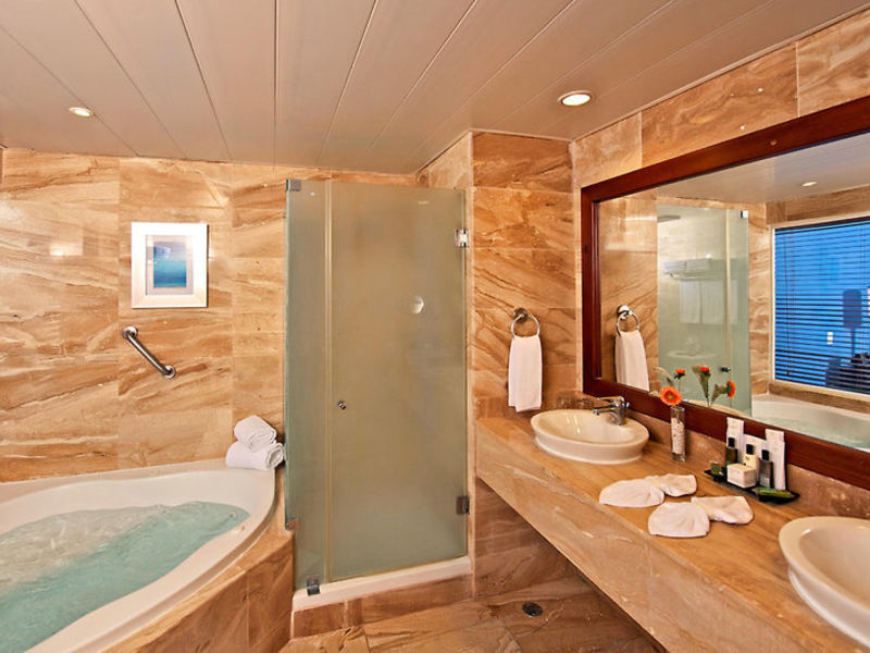 Ubytování: Junior suite (B1-4A) s posezením, kávovarem, mini bar, žehlička a žehlící prkno, klimatizace, trezor, kabelová TV, Wi-Fi (v ceně), telefon, koupelna s hydromasážní vanou nebo hydromasážní sprchou, WC, fén a balkon nebo terasa s deštníkem. Alternativně s výhledem na bazén (B1-4B) lze rezervovat. Volitelně k dispozici jako úschovna (B2-4S) se stejným vybavením jako B2A. V apartmánech Privilege Club Privilege Junior (B1-4C) Kromě toho mohou hosté využít samostatné přihlášení a odhlášení, úschovna zavazadel, minibar, stropní ventilátor, internet v apartmá, koupelna s hydromasážní vanou a hydromasážní sprchou, plážové ručníky a večeře (za pobyt) v restauraci Villa Marina ). Volitelně k dispozici jako apartmá pro svatební hostiny (B2H) nebo jako líbánkový apartmán s výhledem na moře (B2D). Pokoj typu Comfort Plus (B1-4K): Juniorské apartmá B2A v horních patrech.