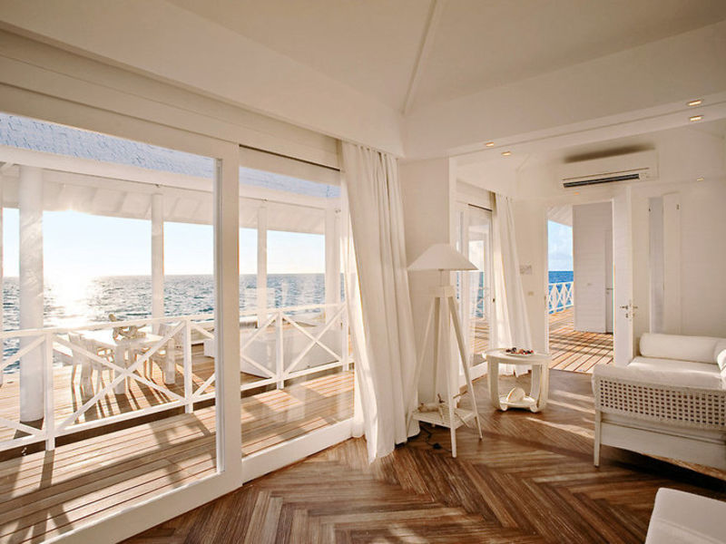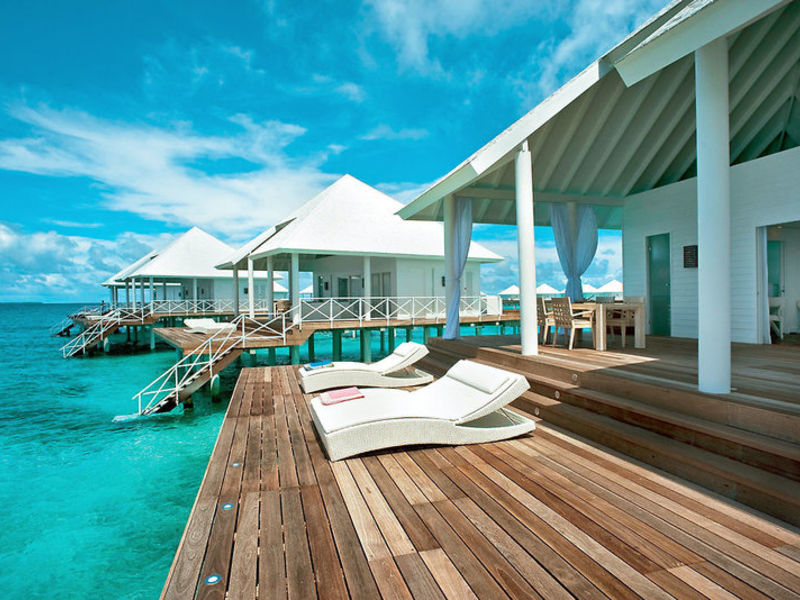 Bydlení Vaše ubytování je v závislosti na rezervované kategorie Beach Bungalows (A1-3A), z nichž každá se 2 pokoji na jednotku, přímo na pláži s posezením, kávy / čaje, minibar (na vyžádání na přání zákazníka bestuckt), klimatizací, stropním ventilátorem, trezorem, dokovací stanicí pro iPod, telefon, částečně otevřené koupelna se sprchovým koutem, WC, samostatný venkovní sprcha, Fohn, župany a sluneční terasou s lehátky a ohromující výhled na moře. Junior Suites (A1-3C) jsou vybaveny podobně prostornější a navíc s rozkládací pohovkou a Wi-Fi připojení na internet (v ceně). Diamanty Water Villas (A1-3B) na chůdách v laguně a velký, přes zastřešenou sluneční terasu s vlastním přístupem k moři, se stejnými zařízení jako A2A, na přání také s 2 Ložnice (A2-6E) rezervace. Jacuzzi Water Villa (A1-3D), navíc s jacuzzi.