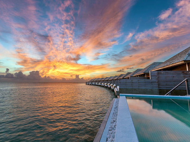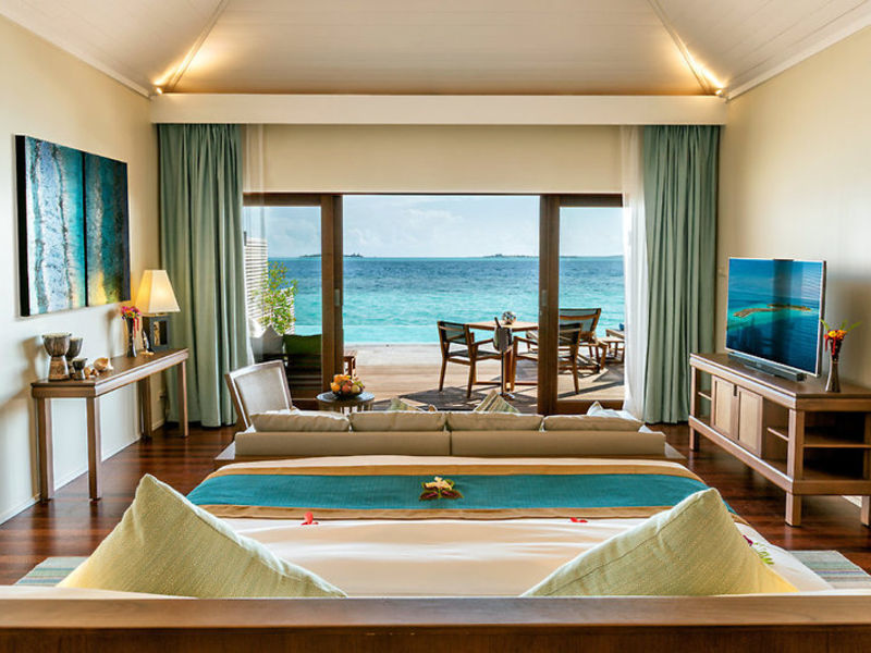 Bydlení Podle rezervace ubytování ve stylově zařízených je Beach Villas (A1-3A, cca 105 m2), všechny vily mají o sezení, kávy / čaje, kávovar, minibar, stropní větrák, klimatizaci, trezor, Kabelová televize, DVD přehrávač, Wi-Fi (v ceně), telefon, koupelna s vanou nebo sprchou, WC, fén, župan, pantofle a terasou. Ocean Villas (A1-3D, cca 105 m2) nebo Ocean Pool Vily (A1-3 G, 132 m2). Sunrise villas se nacházejí na východní straně ostrova, s vynikající výhledem na východ slunce. Západ Slunce Na Pláži Vily (A1-3B, cca 105 m2). Beach Sunset Pool Vily (A1 - 3C, 132 m2). Ocean-Sunset Villas (A1-3E, cca 105 m2), nebo Ocean Sunset Pool Vily (A1-3I, 132 m2). Sunset villas na západní straně se nachází, nabízí vynikající výhled na západ slunce, jinak jako A2A. Všechny Ocean Villas se nachází na kůlech ve vodě. Všechny pool vily mají soukromý bazén navíc.