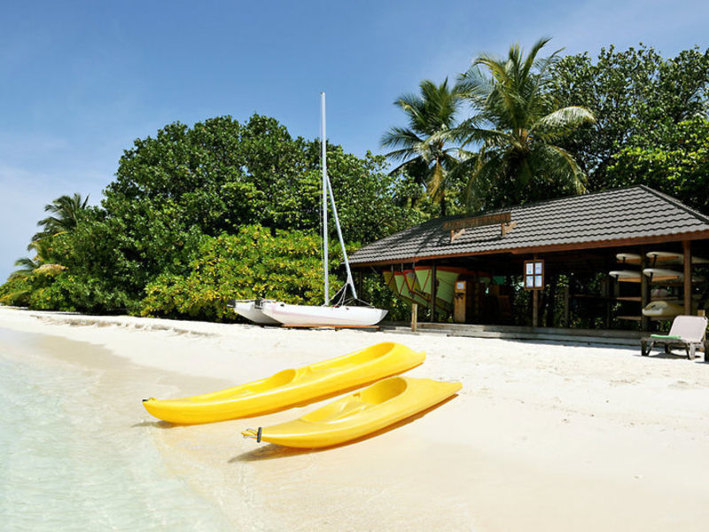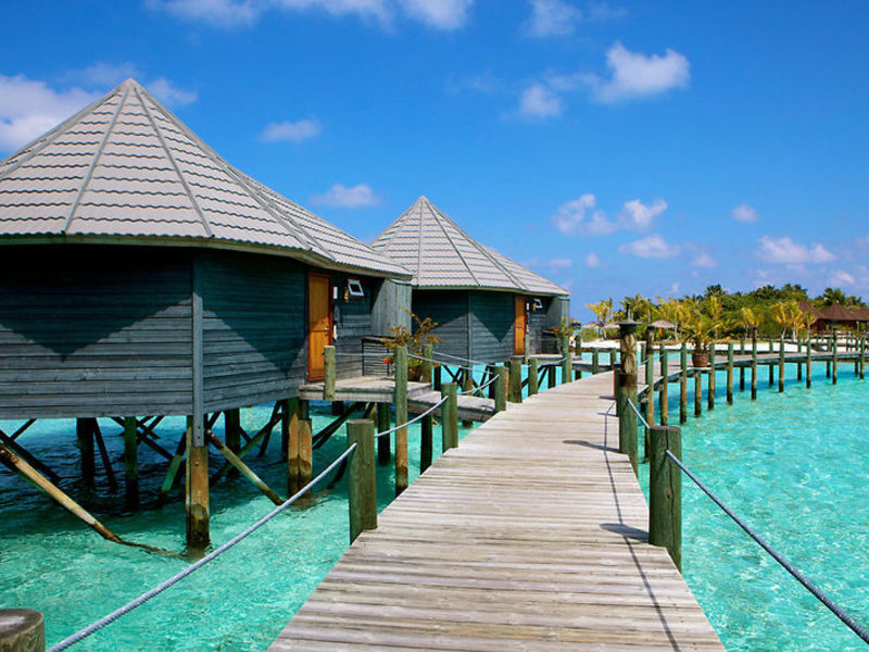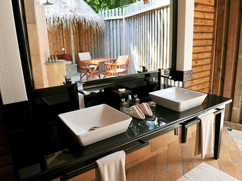 All Inclusive! Volitelně objednat all-inclusive balíček zahrnuje: Rada:A), cca 62 m2, s telefonem, CD přehrávač, iPod dokovací stanici, trezor, mini bar, kávovar, klimatizace, stropní ventilátor, vysoušeč vlasů, koupací pláště, polo-otevřená koupelna se sprchovým koutem, WC a terasa s výhledem na moře. Prostorné vily Jacuzzi pláži (1B/2B), asi 76 m2, s dalšími posezením, soukromé zahrady a jacuzzi. Jacuzzi vodní vily (1c/2c) jsou postaveny na kůlech nad mořem a také mají kabelovou TV a DVD přehrávačem.