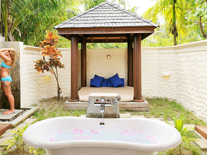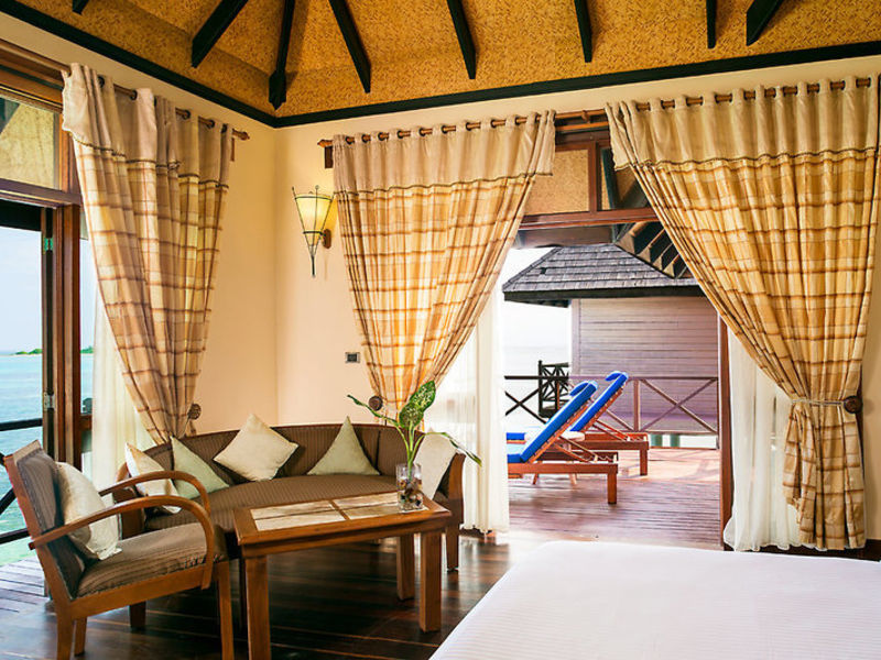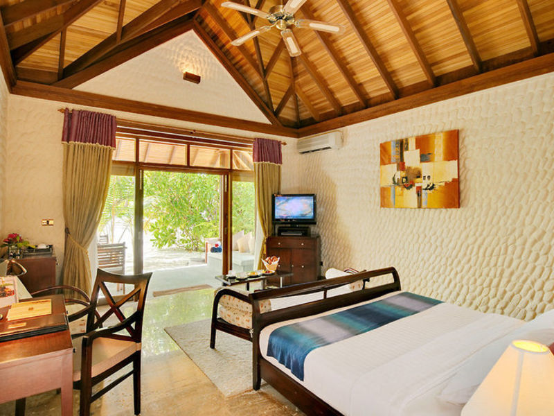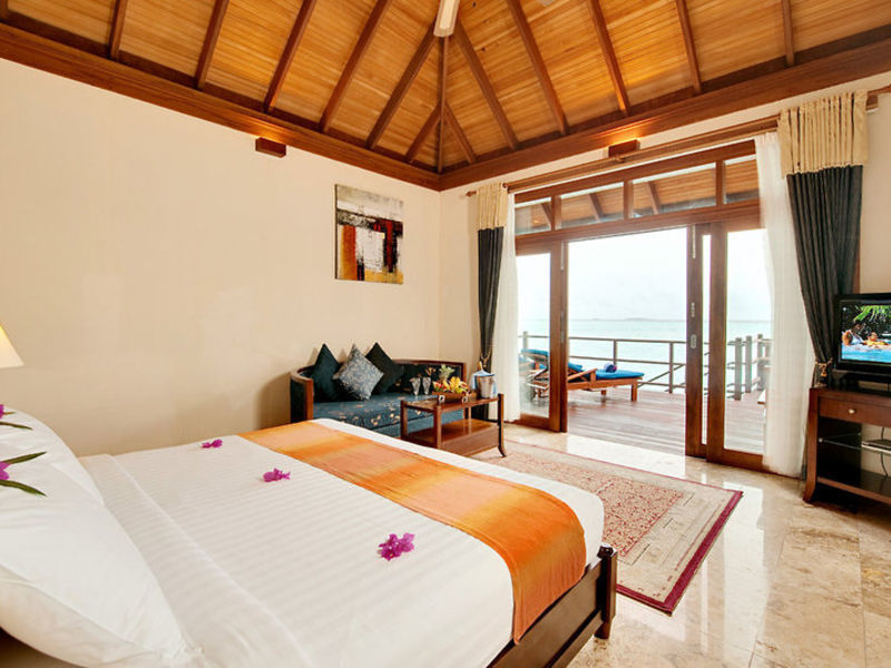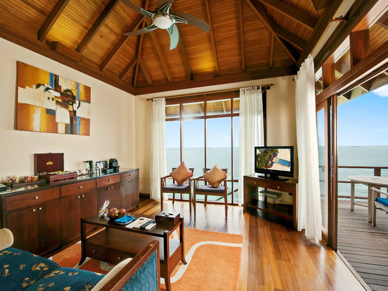 Ubytování: Deluxe pokoj (A1-3B) o rozloze 50m2, v budovách o 4 jednotkách, s posezením, kávovarem, minibarem, klimatizací, stropním ventilátorem, trezorem, satelitní TV, DVD přehrávačem, , Telefon, koupelna se sprchou, WC, vysoušeč vlasů, balkon nebo terasu k moři. Samostatné plážové vily (A1-3E) s rozlohou cca 84 metrů čtverečních, s polo-otevřenou koupelnou s vanou a další venkovní sprchou, terasou s výhledem na pláž (přímý výhled na moře může být omezen vegetací). Detské luxusní vily (A1-3C) o rozloze přibližně 64 metrů čtverečních, na chalupách v laguně se soukromou terasou a přímým přístupem k moři. Vířivé vily (A1-3D), asi 82 metrů čtverečních, s vlastní vířivkou.