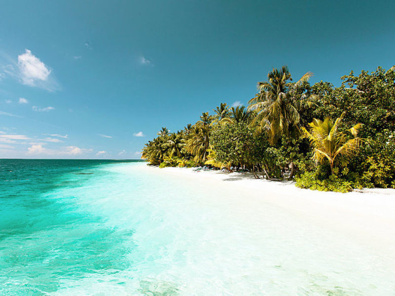 Kord Na jihu Ari atolů. Dům útes je jen 5 až 15 metrů od 1,5 km od bílé písečné pláže a je ideální pro šnorchlování a potápění. Transfer hydroplánem 25 minut.