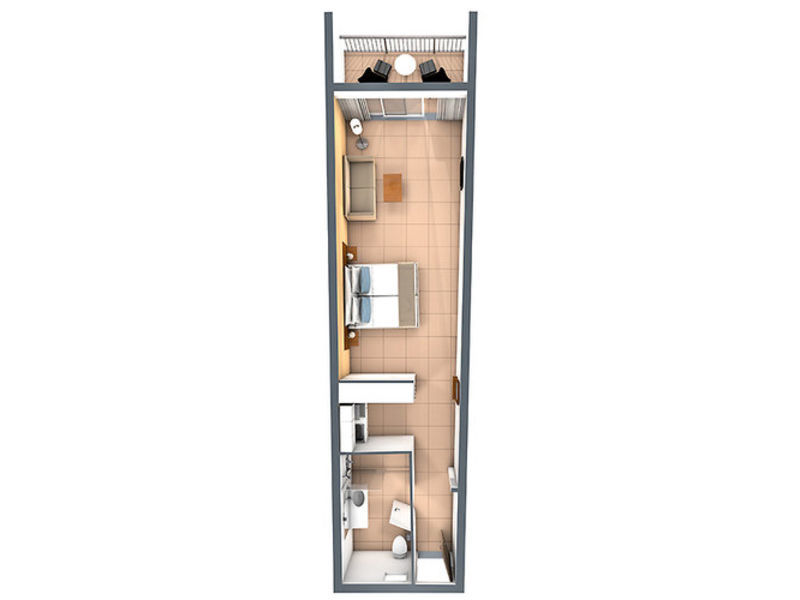 Bydlení Studios (A1-3A), cca 32 m2, s kombinovaný obývací / ložnice, dort linie (kávovar, lednice, mrazák, mikrovlnná trouba, Rychlovarná konvice), klimatizace, pronájem bezpečné, satelitní TV (plochá obrazovka), Internet a Wi-FI (včetně), telefon, koupelna se sprchou, WC, fénem, balkonem nebo terasou. Apartmány (A1-3B), cca 35 m2, se samostatnou ložnicí (s Falttur oddělit), jinak jako A2A.