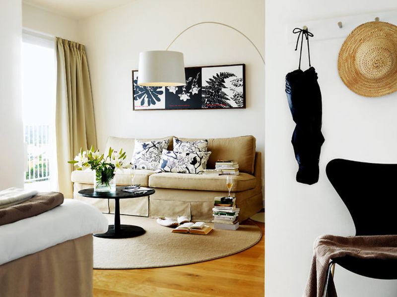 Bydlení Studios (A1-3A), asi 32 metrů čtverečních, přičemž kombinovaný obývací pokoj / ložnice, Schlafmoglichkeit za 3. osobu, kuchyňský kout s ledničkou, kávovarem, mikrovlnnou troubou, rychlovarnou konvicí, klimatizací, trezorem, satelitní TV (plochá obrazovka), internet a WLAN ( v ceně), telefon, koupelna se sprchovým koutem, WC, vysoušečem vlasů a balkonem nebo terasou. Apartmány (A1-3B), asi 35 metrů čtverečních, s (který může být oddělen Falttur), jako A2A oddělenou ložnici.