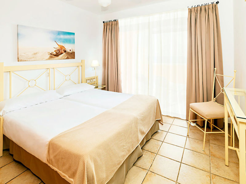 Ubytování: Studia (C1-3A): Kombinovaná obývací pokoj / ložnice se spacím pro 3. osobu, posezení, opticky oddělený prostor pro spaní, plně vybavený kuchyňský kout (lednice, trouba, toustovač, varná konvice), ventilátor v obývacím pokoji, trezor k pronájmu, 32palcovou LCD TV, telefonem, koupelnou s vanou a integrovanou sprchou, toaletou, fénem a balkonem nebo terasou. Alternativně také studia (C1-3D) s výhledem na bazén, studia (C1-3E) s bočním výhledem na moře nebo studia (C1-3C) s výhledem na moře, jinak vybavení jako C2A, rezervovatelné. Prostornější apartmány (B2-4D) mají oddělenou ložnici a balkon nebo terasu s výhledem na bazén, jinak C2A. Apartmány (B2-4E) s částečným výhledem na moře, jinak jako B2D. Apartmán (A4-5A) má 2 oddělené ložnice a 2 koupelny (jedna s vanou a vestavěným sprchovým koutem a jeden se sprchou) a balkon nebo terasu.