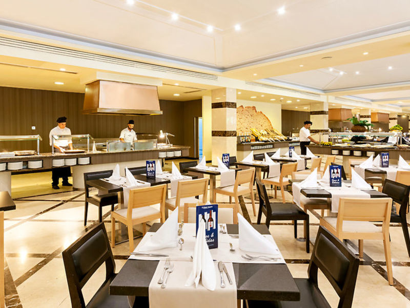 Jídelní lístek zahrnuje jídelnu, jídelnu, snídaňovou místnost, kavárnu a bar. Ubytování nabízí polopenzi, plnou penzi a all-inclusive pokrmy jako rezervovatelnou stravu. All-inclusive rekreanti se mohou těšit na speciální doplňky, jako jsou občerstvení a výběr alkoholických a nealkoholických nápojů. Bohatá snídaně formou bufetu, oběd a pestrý večerní bufet jsou lahodné a pestré. K dispozici jsou také speciální jídla včetně dietních jídel. Vynikající kuchaři připravují vynikající speciality při vaření.
