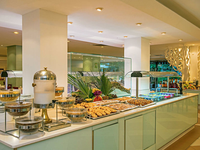All Inclusive: Bufety. Vaření show "Iberostarchef". Místní alkoholické a nealkoholické nápoje od 10:30-24:00. Alternativou k večeři v hlavní restauraci je oběd formou bufetu u bazénového baru, Dunas'. 12.30-15.30 (květen-září, pokud počasí dovolí). Káva, čaj, sendviče a pečivo mezi jídly. Samoobslužné služby pro hosty, AI.