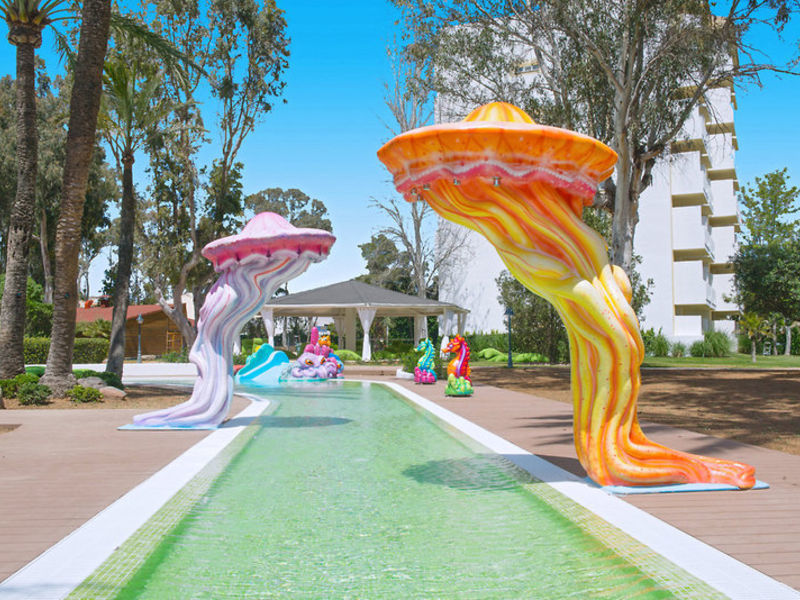Rodiny: AQUAFUN (zábavní bazén) a FUN PARK (dětské hřiště). Dětský bazén, dětský tobogán, miniklub (4 až 7 let), maxi klub (8 až 12 let), teen klub (13 až 17 let, v červenci / srpnu).