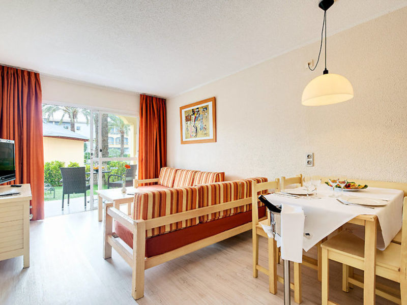 Bydlení Turné Apartmány (A2-3A, Alcudia Garden) vhodné pro 2-3 osoby miminko. Vy spárování přes kombinovaný obývací pokoj, oddělená ložnice, kuchyňský kout, jídelní kout, klimatizace, trezor, satelitní TV, telefon, koupelna s vanou a sprchou, WC, vysoušečem vlasů a balkonem. Spar-Apartmány (A2-3S), nebo rekonstruovaný Apartmány (A2-3H), které jsou vybaveny jako A2A, objednat různé. volitelný Apartmány Výhled Bazén (A2-3D) nebo Zrekonstruované Apartmány S Výhledem Na Bazén (A2-3L), jinak s vybavením jako A2A, objednat různé. Dvoulůžkový Pokoj (A1-2B) jsou vybaveny klimatizací, trezorem, satelitní TV, telefon, vana, sprchový kout, WC a balkon. renovovaný Apartmány (A2-3G), vybavená jako A2B, objednat různé. Apartmány (E2-3A, Beach Garden): S výhledem na moře, jinak s vybavením jako A2A. Apartmány (C2-3A, Palm Garden) s příslušenstvím, jako A2A rezervace. Spar-Apartmány (C2-3S), vybavená jako C2A, k dostání. Úklid a ručník změna 4 krát týdně.