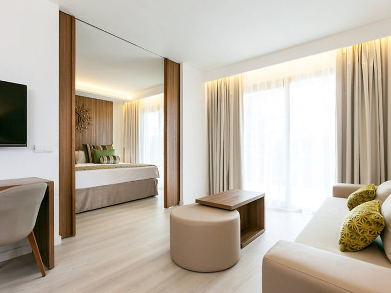 Bydlení Pěkné a elegantní Junior Suites (A1-3A) injektáž přes king-size postelí, kávovarem, minibarem, klimatizací, trezorem, satelitní LCD TV, Wi-Fi (v ceně), telefon, koupelna s vanou a sprchou, WC, vysoušečem vlasů, županem a balkonem. Spar Junior Suites (A2-3S), jako A2A, objednat různé. volitelný Doplavat Junior Suite (A2-3B) s přímým přístupem k bazénu a soukromý balkon / terasa s pohovkami z Bali, jinak A2A, možno rezervovat. Penthouse Junior Suites (A2-3C) nabízí střešní terasu s vířivkou a lehátky, jinak A2A. luxusní Zafiro Apartmány (A2-3D) mají kuchyňský vozového parku je vybavena ledničkou a mikrovlnnou troubou a oddělenou ložnici, jinak jako A2A. volitelný Zafiro Plavat-Up Apartmá (A2-3E) s přímým přístupem k bazénu a soukromou terasu s pohovkami z Bali, jinak A2D. Zafiro Penthouse Suites (A2-3F) nabízí střešní terasu s vířivkou a lehátky, jinak A2D. Rodinné Apartmány (A3-5G) jsou vybaveny dvěma oddělenými ložnicemi, obývacím pokojem a kuchyňským koutem s lednicí a mikrovlnnou troubou, jinak A2A. volitelný Doplavat Rodinné Apartmány (A3-5H) s přímým přístupem k bazénu a soukromou terasu s pohovkami z Bali, jinak A2G, možno rezervovat. Penthouse Family Suites (A3-5I) nabízejí dodatečně střešní terasu s vířivkou a lehátky, jinak A2G.