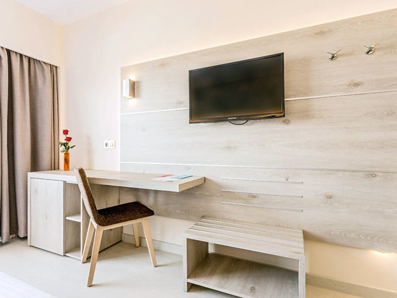 Ubytování: Pokoj Superior (A1-3B). Klimatizace (teplé / studené), mini lednička, satelitní TV, koupelna se sprchou, WC, vysoušeč vlasů a balkon. Také s bazénem (A2-3G) nebo výhledem na moře (A2-3E) rezervovatelné. Jednolůžkový pokoj (A1F), zčásti bez balkonu, jinak A2B. Apartmány (B2-3A) v přízemí (protější), pro 2 až 4 osoby (max. 3 dospělí), navíc s oddělenou ložnicí, kombinovaným obývacím pokojem / ložnicí a kuchyňským koutem s lednicí.