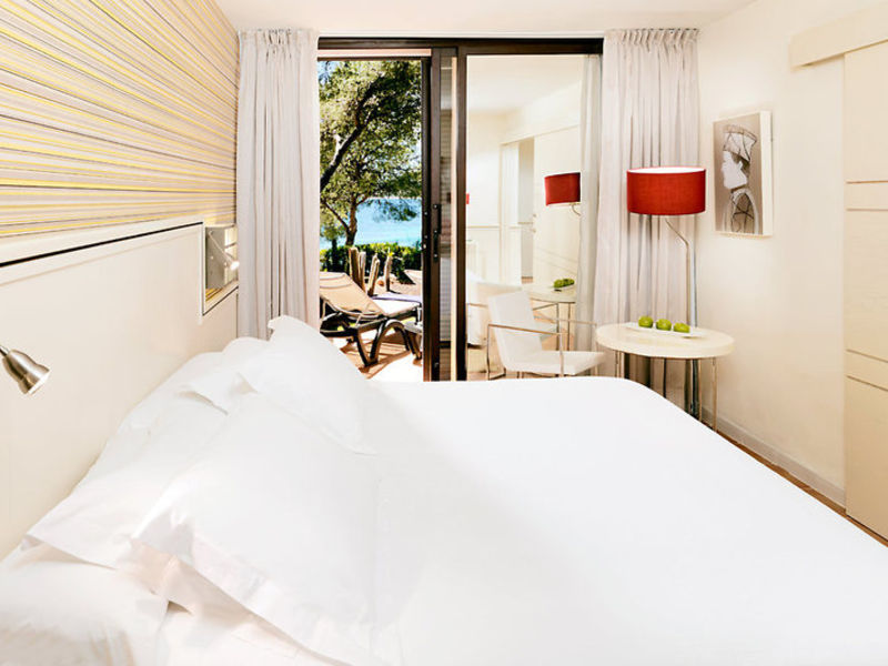Bydlení Turné Dvoulůžkový Pokoj (A1-3A) mají obývací část loďstva, kávovar Nespresso (4 kapsle zdarma), minibar (za poplatek), klimatizace, trezor, satelitní TV, iPhone dokovací stanice, koupelna s vanou a sprchou, WC, vysoušeč vlasů, župan a pantofle , balkony a výhled na moře. Pokoj Typu Superior (A1-3D) jsou vysoce kvalitní nábytek a také zálivka nad výhledem na moře, s identickými zařízení, jako A2A. Apartmány (A2-3B) injektáže částečně na zahradě a nad balkonem nebo terasou. Vily (A2-3E) zálivka nad výhledem na moře, jinak zařízené jako A2B.