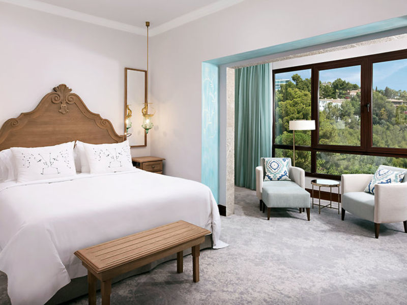 Ubytování: Klasických dvoulůžkových pokojů (C1-3A) jsou vybaveny posezením, minibarem (za poplatek), klimatizace, Trezor, satelitní TV, Wi-Fi (včetně), telefon, koupelna, sprcha, WC, vysoušečem vlasů, župany a pantofle. Také s balkonem (C1-3 H) mohou být rezervovány. Pokoje Deluxe (C1-3B) jsou prostornější. Pokoj typu Grand deluxe (C1 - 3C) lze rezervovat s balkónem a výhledem na zátoku. Klasické apartmány (C2E) se nacházejí v horních patrech a nabízejí krásnéPanoramatický výhled na záliv Palma. Jako Deluxe apartmá (C2-3F) s lounge sep. Prohlédni si můžete rezervovat Dvoulůžkový pokoj, balkon a moře. Rodinné apartmá (C2D): s výhledem do zahrady. Lion suite (C2G): cca 100 m2, lev design, jinak jako C2F. Royal Suite (C2I): 132 m2, sep. Hermès vybavení koupelny, obývací pokoj, šatnu, gr. Terasa/balkon s výhledem na záliv a golfové hřiště.