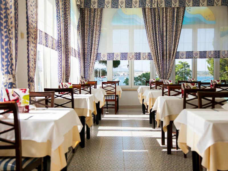 2 budovy. V hlavní budově vstupní hala s recepcí výtahy,, obývací pokoj, satelitní TV místnost, bar, kavárna. Kromě budování restaurace. Ve venkovním areálu jsou 2 koupaliště/> Polopenze. Všechna jídla formou bufetu.