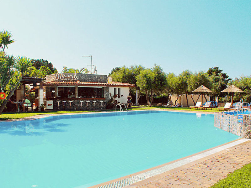 Ubytování: Studia (D1-2A) o rozloze cca 20m2 jsou vybavena kuchyňským koutem, ledničkou, přístupem na internet, koupelnou se sprchou, toaletou, fénem a balkonem nebo terasou. Superior Studios (E1-2A), asi 25m2, mají také mikrovlnnou troubu a rychlovarnou konvici v kuchyňském koutu, individuální klimatizaci (za příplatek) a satelitní TV, jinak zařízení jako D2A. Apartmány (D2-4B), asi 60m2, skládající se ze 2 ložnic, navíc vybavené mikrovlnnou troubou v kuchyňském koutu, jinak jako D2A, s balkonem nebo terasou na zahradní straně. Superior mezonetový pokoj (E2-3C), v mezonetu ve 2 patrech s ložnicí a obývacím pokojem / ložnicí, kuchyňským koutem s mikrovlnnou troubou a varnou konvicí a klimatizací (za příplatek), satelitní TV, 2 koupelny, balkonem a terasou jinak jako D2A. Superior mezonetová místnost (E2-5B) se 2 oddělenými ložnicemi a obytnou / spací částí, individuální klimatizací (příplatek), kuchyňský kout s lednicí a mikrovlnnou troubou, koupelna se sprchovým koutem, balkon nebo terasa, jinak E2C. Villa (E2-6D), asi 120 metrů čtverečních, v přízemí se dvěma ložnicemi a obývací pokoj / ložnice a 2 koupelny, jednu další ložnici pod střechou, individuální klimatizace (v ceně), terasa, jinak D2A.