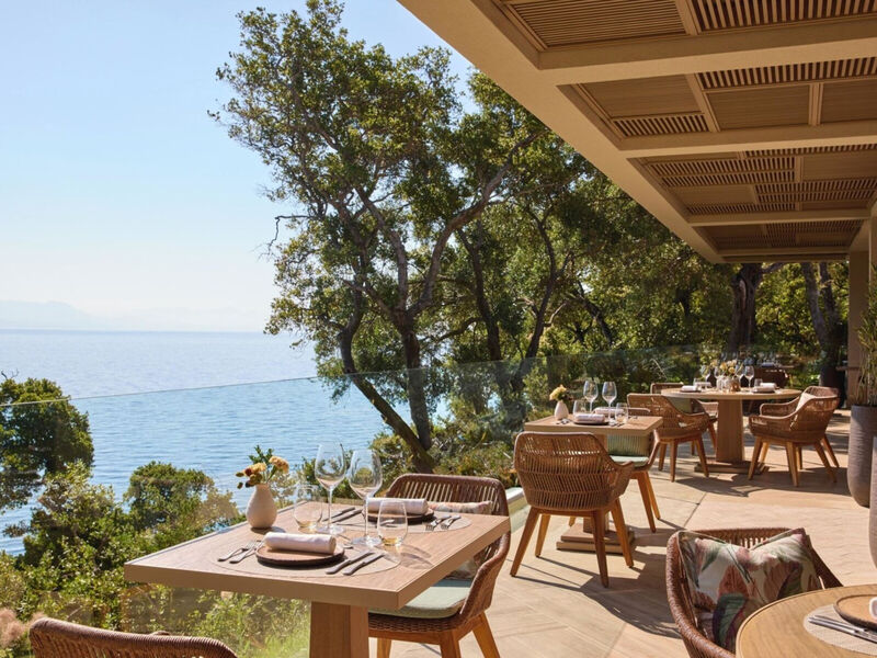 gurmánská restaurace "Elia Restaurant": druhy kuchyní: řecká, kojenecké menu, dětské menu, lehce stravitelná jídla, vegetariánská jídla, a la carte, v ceně, zahrnuto v all inclusive, dětské židličky, vyžadováno vhodné oblečení