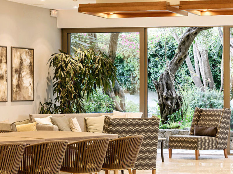 Spolu s dietoulimatisiertes restauraci, lobby bar, salonky, internetový koutek, satelitní TV místnost, obchody, a výtah. V pěstěné, upravené zahradě je bazén s mořskou vodou s barem u bazénu a sluneční terasa na pláži Vás čeká útulné taverně a la carte brasserie. Lehátka, slunečníky a plážové osušky jsou k dispozici u bazénu i na pláži zdarma.