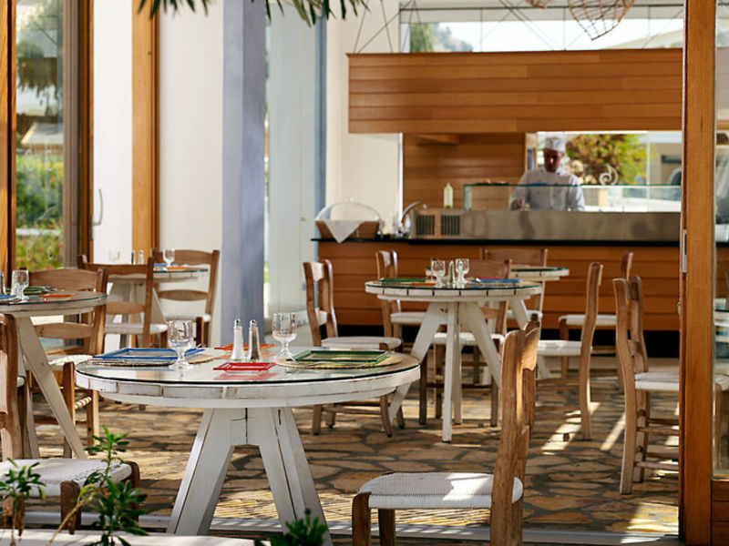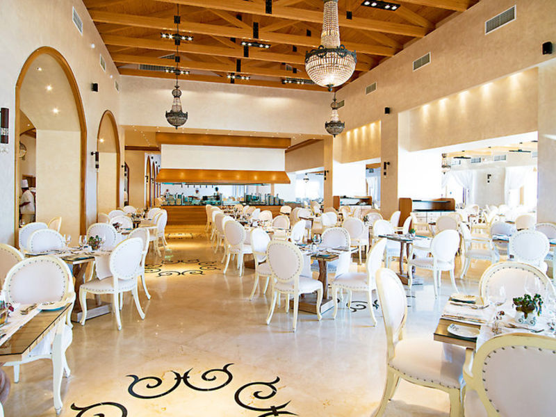 All Inclusive: Všechny pokrmy ve formě bufetu. Do 10:30 hodin pozdní snídaně snídaně. Espresso, cappuccino a čerstvá pomerančová šťáva na snídani. 24h. Servis v hlavní restauraci. Od 12.30-14.30 oběd v 1 tématické restauraci (italská, rezervace nutná) a ve všech 6 dalších tematických restauracích (Biraria, Burger, Crêperie, Pita corner, Ouzeri, Sushi, bez rezervace). Od 19:00 do 21:00 večeře v 1 tématické restauraci (italské), 18.30-21.30 večeře ve 3 tématických restauracích (asijské, řecké a mexické, rezervace je nutná). Creperie od 10:30 do 13:30. Zmrzlinový vůz u bazénů a na pláži. Místní alkoholické nápoje a nealkoholické nápoje od 10.00-01.00. Denní doplňování minibaru v pokoji s pivem, vodou a nealkoholickými nápoji.