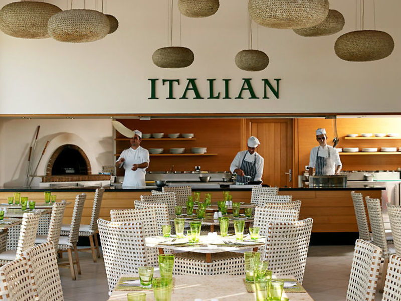 All Inclusive: Všechny pokrmy ve formě bufetu. Do 10:30 hodin pozdní snídaně snídaně. Espresso, cappuccino a čerstvá pomerančová šťáva na snídani. 24h. Servis v hlavní restauraci. Od 12.30-14.30 oběd v italské restauraci (rezervace nutná) ve všech 6 dalších tematických restauracích (Biraria, Burger, Crêperie, Pita corner, Ouzeri, Sushi, bez rezervace). Od 19:00 do 21:00 večeře v italské restauraci od 18:30 do 21:30 večeře ve 3 restauracích (asijské, řecké a mexické, rezervace nutné). Creperie od 10:30 do 13:30. Zmrzlinový vůz u bazénů a na pláži. Místní alkohol. Nápoje a nealkoholické nápoje od 10.00 do 01.00 hod. Denní doplňování minibaru v pokoji s pivem, vodou a nealkoholickými nápoji.
