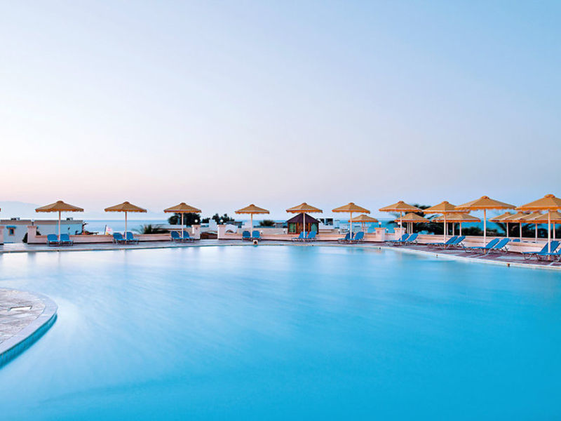 Vybavení Hotel má asi 455 jednotky, s hlavní budovou a několika Nebengebauden, vstupní hala s recepcí, TV koutek, internetový koutek (za poplatek), Wi-Fi (za poplatek), restaurace, 2 à la carte restaurace (asijské a řecké taverny), bar, kavárna a minimarket. Existují, 1 bazén se slanou vodou, 1 sladkovodní bazén s tobogány, relaxační bazén s vířivkou a barem u bazénu ve venkovním areálu. Plážový bar a pizza-Haus amPláž. Lehátka a slunečníky jsou u bazénu a na pláži, ceně, ručníky proti vkladu.