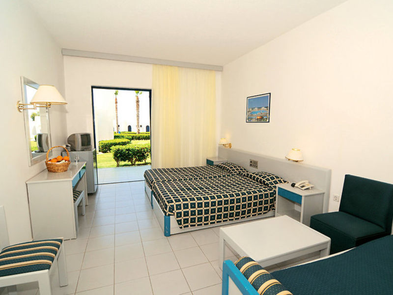 Vybavení: Hotel má 182 pokojů které rozložena na hlavní budovou a několika bungalovy, lobby s recepce, salonek, TV místnost, internetový koutek (za poplatek), Wi-Fi (v celém hotelu včetně), klimatizovaná restaurace, řecká taverna (poblíž pláže), bar, minimarket a obchod se suvenýry. Exteriér má plavecký bazén a bar u bazénu. Sluneční lehátka a slunečníky jsou včetně u bazénu, plážové osušky za poplatek.