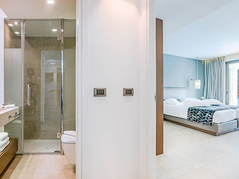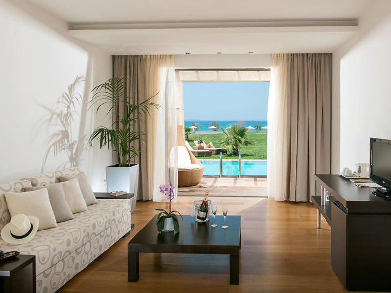 Ubytování: Elegantně zařízené dvoulůžkové pokoje (A1-3A) s dlažbou, čaj a kávovarem, minibar, klimatizace, trezor, satelitní TV, WLAN (v ceně), telefon, koupelna s vanou a integrovanou sprchou, WC a balkon nebo terasa s výhledem do zahrady nebo pool. Případně také s výhledem na moře (A2-3B), se sdíleným bazénem (A2-3E) a terasou nebo jako úsporný pokoj (A2-3S) rezervovatelné. Rodinné pokoje (A2-3C) mají oddělenou ložnici a vstupní část s rozkládací pohovkou, jinak vybavené jako A2A. Executive Family Suites (A2-3F) mají oddělenou ložnici a obývací / spací část s 2 rozkládacími lůžky, jinak A2A. Executive Suites (A2-3L) jsou prostornější a mají vlastní bazén s bočním výhledem na moře. Executive Suites (A3-4H) mají 2 oddělené ložnice, obývací pokoj, 2 koupelny s vanou a sprchou a společným bazénem s vyhrazenými lehátky a slunečníky, bočním bazénem nebo výhledem na moře a balkonem nebo terasou, jinak s vybavením, jako je A2A , Maisonette Sea Front (A3-4J) s 1 samostatnou ložnicí, 2 koupelnami s vanou a integrovanou sprchou, sdíleným bazénem a výhledem na moře, jinak s vybavením, jako je A2F rezervovatelné.