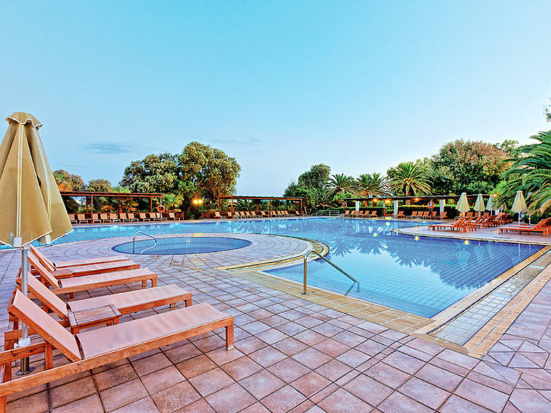 Vybavení Středisko nabízí 334 pokojů rozložena na 5 patrech v hlavní budově a 2-Fusty Reihenbungalows. Kromě toho je k dispozici vstupní halu s recepcí, výtahy, internetový koutek a Wi-Fi v celém hotelu a na pláži (v ceně), business centrum, bufetová restaurace s kuchařskou show a terasou, 3 a la carte restaurace (Řek., Ital., A Asijská kuchyně) , 5 barů (bazénu a plážový bar wetterabhangig otevřen), amfiteátr,Klenotník, obchod se suvenýry a mini market. V rozlehlé kvetoucí a kvetoucí zahrada má 1 bazén se slanou vodou a 2 Susswasserpools. Židle a slunečníky jsou u bazénů a na pláži včetně. Ručníky pro inkluzívní.