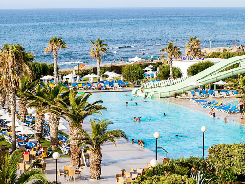 Poloha: Komplex hotelu a bungalovu se nachází přímo na jemně svažité písečné pláži. Malá vesnice Analipsis s několika obchody, hospůdkami a bary je vzdálena asi 1 km. Slavné letovisko Hersonissos je vzdálené asi 4 km. Doba transferu z letiště je asi 30 až 55 minut.