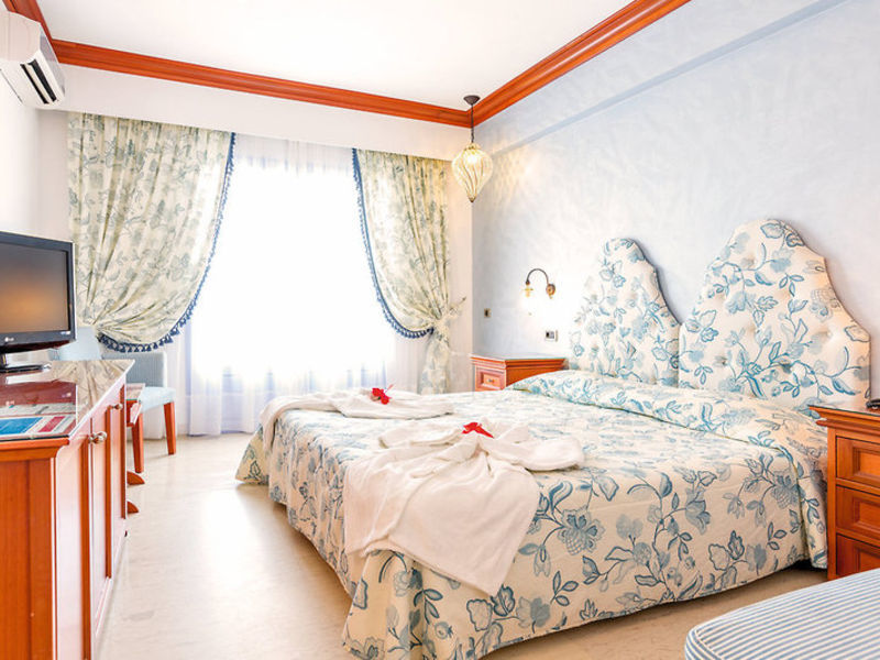 Vybavení Velký průvan hotelový komplex má celkem 276 pokojů rozdělených mezi hlavní budovy a několika Bungalowgebaude. Plat má také lobby s 24 hodinová recepce, výtah, TV koutek, Wi-Fi ve vstupní hale včetně, jinak v hotelu a na pokojích proti obvinění, bufetovou restauraci, 3 à la carte restaurace (řecké, italské, asijské / sushi), lobby bar s terasou, klenotnictví, kadeřnictví a mini trhu. VVenkovní 2 moře vody bazénů a bazén pro děti (se skluzavkami), bar u bazénu. Lehátka a slunečníky u bazénu a na pláži, včetně.