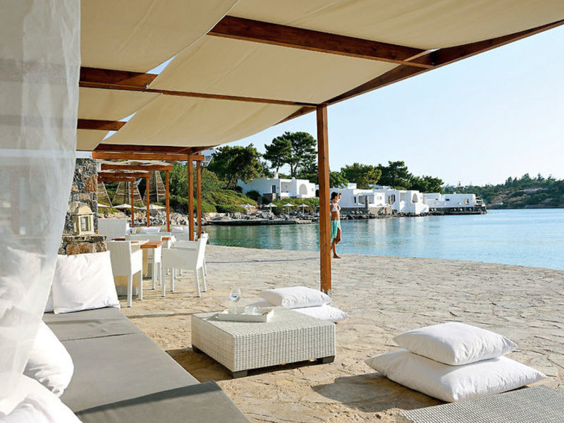 Minos Beach je členem Small Luxury Hotels podporuje of the World. Decentní služby a funkce, diskrétní luxusní systému. Nabízí salonky, hlavní restaurace Bacchus s oblastí kouření Non, ele-GANT Restaurace Ambrosia, Terpsis CrEtan restaurace a gurmánská restaurace La Bouillabaisse , bar, internetový koutek, TV místnost, herna, obchod se suvenýry a Ananea Wellness centrum s ayurvedické. V zahradě s několika díla renomovaných umělců, je mořská voda bazén se sluneční terasou. Tu a na pláži se dostanete plážová lehátka, ručníky a slunečníky zdarma. New bar na pláži.
