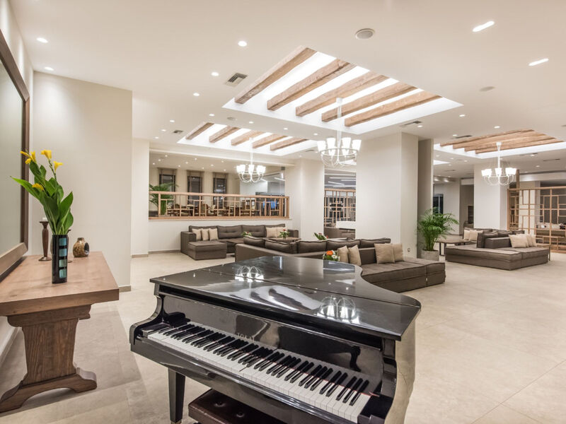 Hosté mají k dispozicirecepce lobby výtah 2 hlavní restaurace (jedna pro rodiny s dětmi nad 7 let, show cooking) 4 tématické a la carte restaurace (Poseidon - ryby, mořské plody, Zorbas - řecká, Firenze - italská, NAMI - asijská , nutná rezervace, v ceně) zahrada 5 bazénů (z toho 4 bazény s 50% sladkou vodou a 50% mořskou vodou, 3 bazény s hydromasáží, duben-říjen) relaxační bazén (od 16 let) 6 barů (bar u bazénu, plážový bar, 4 snack bary)