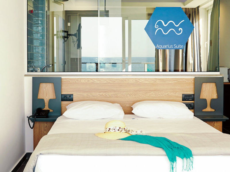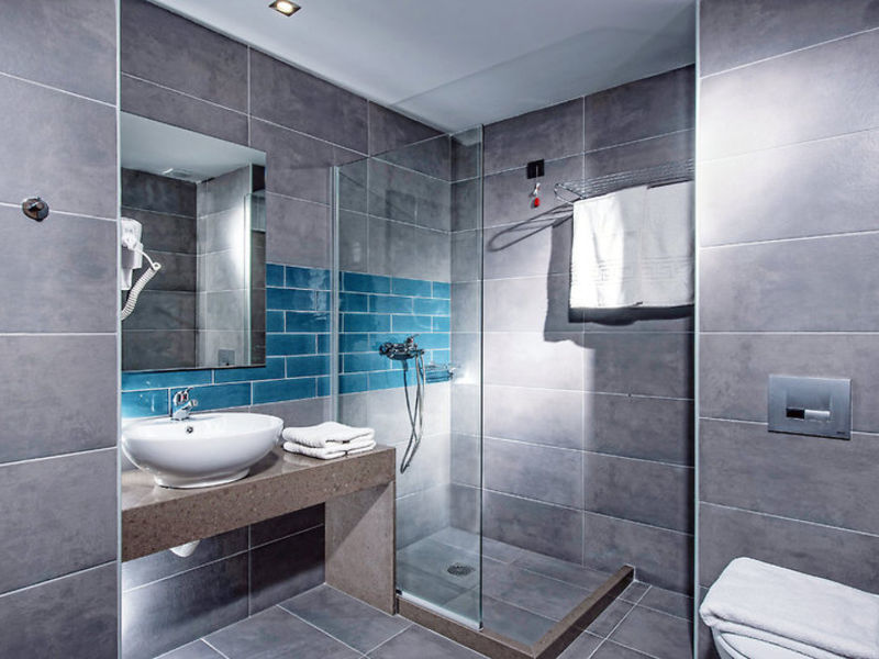 Vybavení: Tento designový hotel má 79 pokojů rozložených na 3 podlažích. Mezi další zařízení patří: lobby s recepcí a posezením, bar, bezdrátové připojení k internetu (včetně celého hotelu). 2 restaurace, bufetová restaurace se nachází na střešní terase, stejně jako bar na obloze. Restaurace à la carte (řecká kuchyně) se nachází na promenádě s nádherným výhledem na moře. Venku se nachází bazén se sluneční terasou. Plážové židle a slunečníky jsou součástí plaveckého bazénu, za poplatek. Osušky jsou za poplatek.