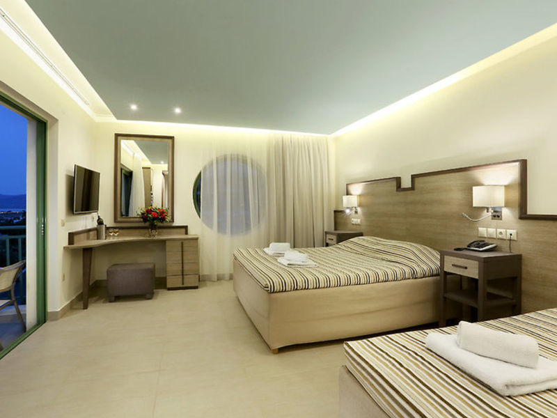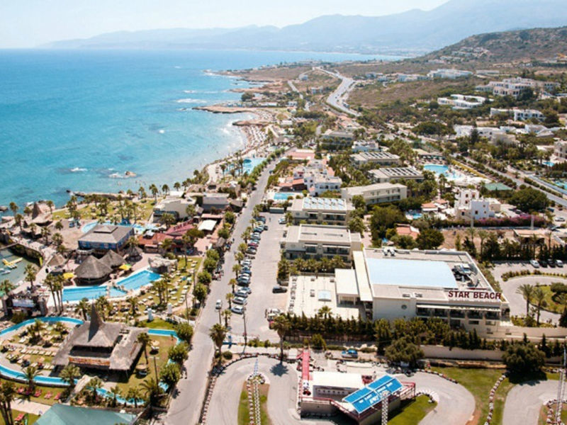 Poloha: Oddělená silnicí od krásné písečné pláže. Centrum města Hersonissos je vzdálené asi 1,5 km. Nedaleko se nachází řada obchodů, restaurací, barů a nočních klubů. Hotel je přímo napojen na vodní park přes podjezd. Doba přestupu z letiště Heraklion je asi 30 až 60 minut.