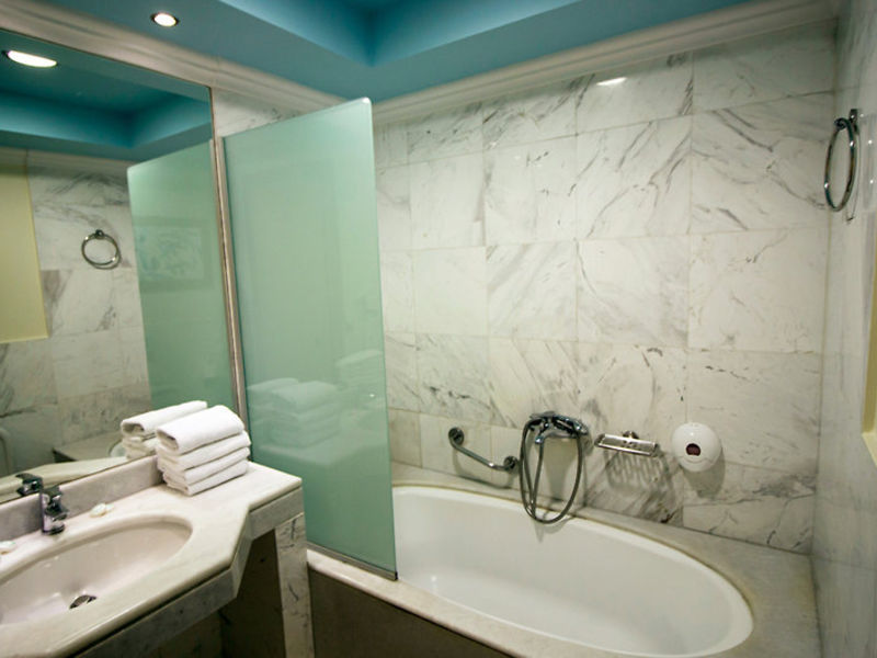 Vybavení: 325 pokojů je rozděleno do 9 budov. Lobby s recepcí, výtahy, internetový koutek a WLAN (včetně), 3 restaurace (včetně řecké taverny a asijské kuchyně), bar u bazénu, lobby bar, mini market a obchody. 700 m² bazénu a vířivky. Sluneční terasa a snack bar. Plážové židle a slunečníky u bazénu, v aquaparku a na pláži včetně. Aquapark má 8 bazénů, mini fotbal, tělocvičnu. Plážové ručníky jsou v ceně.
