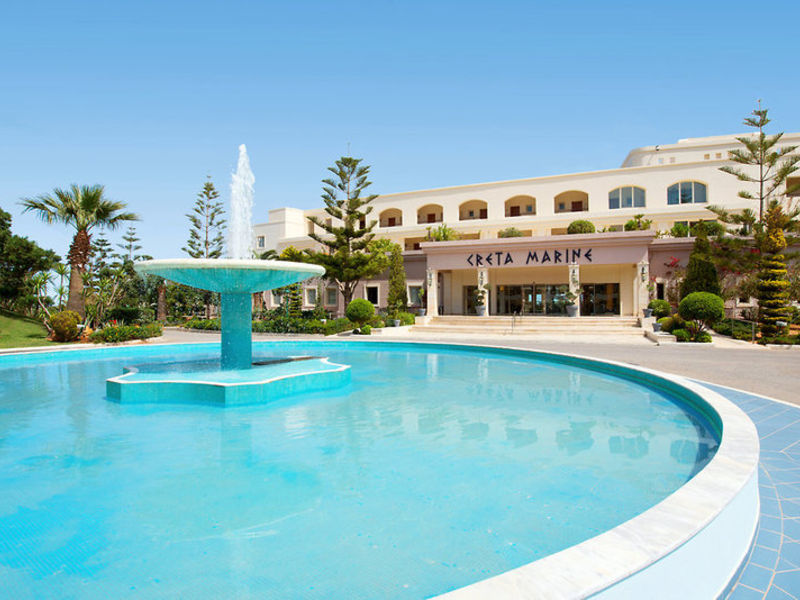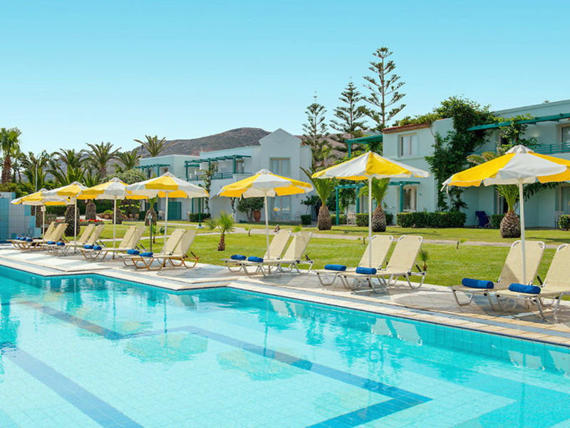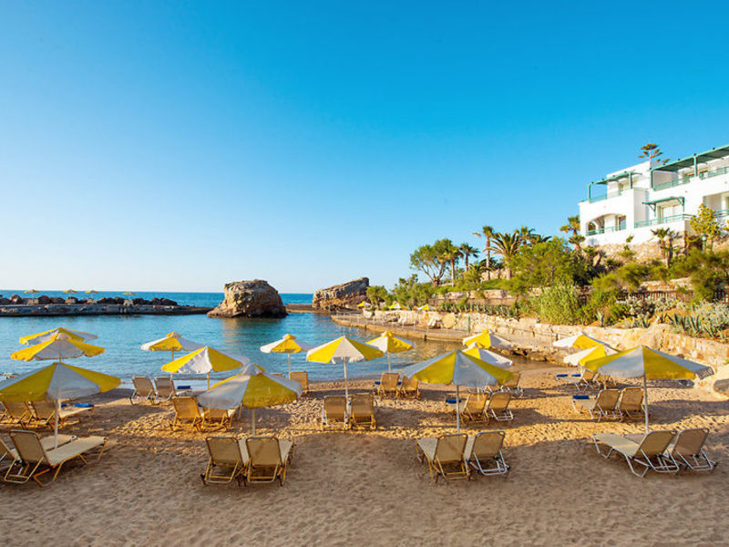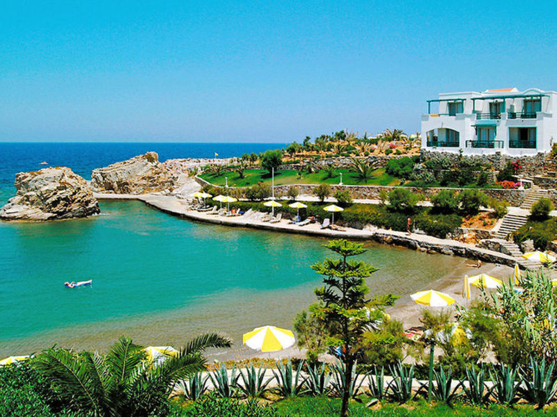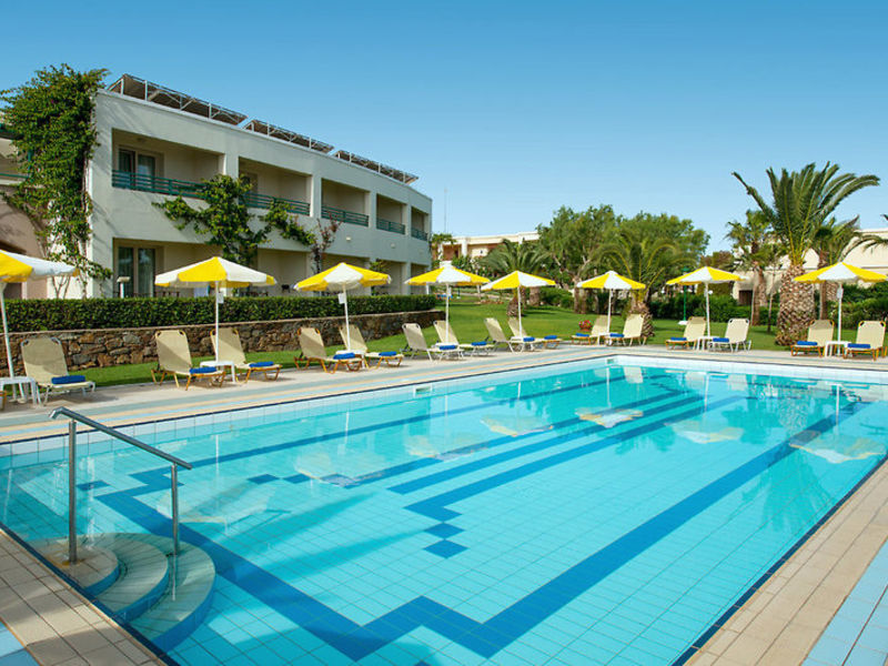Vybavení: 359 pokojů je rozděleno na čtyřpodlažní hlavní budovu a několik bungalovových budov. Lobby s recepcí, vleky, lobby bar, Wi-Fi (v ceně), bufetová restaurace s krétskými specialitami, "Vegghera" Cretan a la carte restaurace (červen-září, večerní menu s rezervací), "Thalassa" Rezervace), mini market, klenotnictví, knihkupectví a obchod se suvenýry. V prostorné zahradě jsou 3 bazény s mořskou vodou s různými bary, včetně pláže a bazénu. Plážové židle a slunečníky jsou součástí bazénů, na pláži za poplatek. Ručníky na ručníky proti kauci.