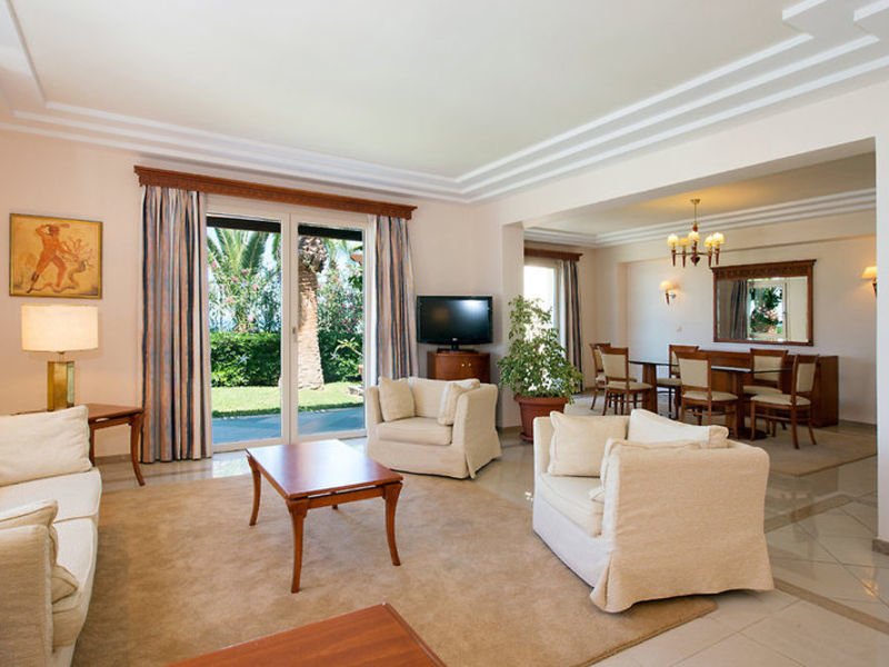 Vybavení: Hotel má 359 pokojů rozložených přes 4-patrovou hlavní budovu a několik budov bungalovů. Mezi další zařízení patří lobby s recepcí, výtahy, WLAN (včetně) a internetový koutek (v závislosti na poplatcích), lobby bar, bufetová restaurace s krétskými specialitami, Cretan a la carte restaurace "Vegghera" (červen-září; ), "Thalassa" středomořská a la carte restaurace (večerní menu s rezervací), mini market, klenotnictví, knihkupectví a obchod se suvenýry. Mimo 3 bazény s mořskou vodou a různých barů, včetně pláže a bazénu. Plážové lehátka a slunečníky jsou u bazénů včetně, Na pláži za poplatek. Ručníky na ručníky proti kauci.