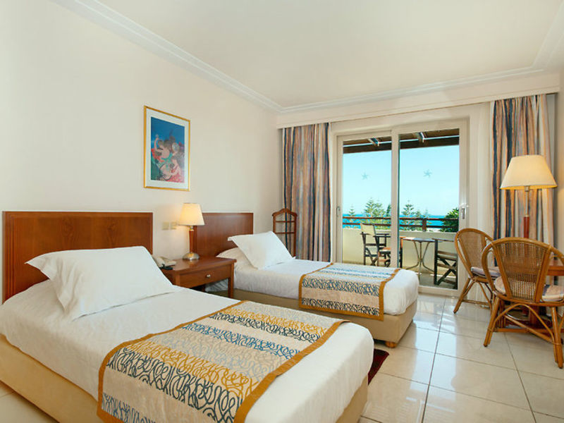 Vybavení Hotel má celkem 359 pokoje v hlavní budově 4podlažní a několik Bungalowgebaude. Také má vstupní halu s recepcí, výtahy, Wi-Fi a internetový koutek (za poplatek), lobby bar mzdy bufetové restaurace s krétské speciality, mexická restaurace (červen září; Večeře při rezervaci), Restaurace (středomořské kuchyně, za poplatek), minimarket, šperky, knihkupectvía obchod se suvenýry. Venkovní 3 bazény s mořskou vodou a různé bary na pláži a u bazénu. Lehátka a slunečníky jsou zahrnuty bazény na pláži proti poplatku. Ručníky proti vkladu.