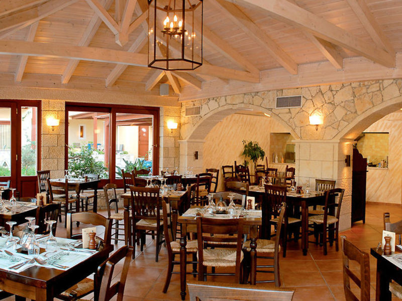 All Inclusive: Nejlepší místní alkoholické a nealkoholické nápoje od 10:00 do 23:00. Snídaně formou bufetu od 07:00 do 10:00. Oběd formou bufetu od 12:30 do 14:00. Večeře formou bufetu od 18:30 do 21:00. Občerstvení (10.00 18.00), kávu, koláče a zmrzlina pro děti od 15:00 do 16:00 v baru u bazénu. Od 11:00 do 17:00 (otevřeno v sezóně) je plážový bar "Ráj". 1 x za pobyt večeře vItalské À la carte restaurace, 1 x za pobyt večeře v Řecké taverně (sezónní otevřené; rezervaci).