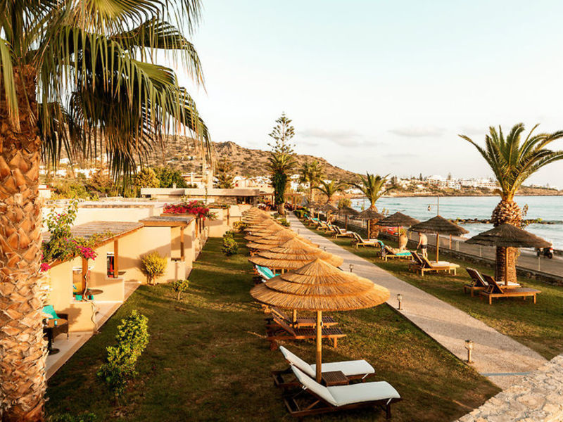 Kord Tento okouzlující hotel je klidný a jen pár metrů od mírně se svažující písečné pláže a jasně modré moře a je oddělen pouze zřídka používané silnici od pláže. Středovými a útulné restaurace a bary jsou ve vzdálenosti do 50 metrů. Před hotelem se nachází autobusová zastávka linky do Heraklionu a Agios Nikolaos. Doba přenosu činí asi 35 až 70 minut.