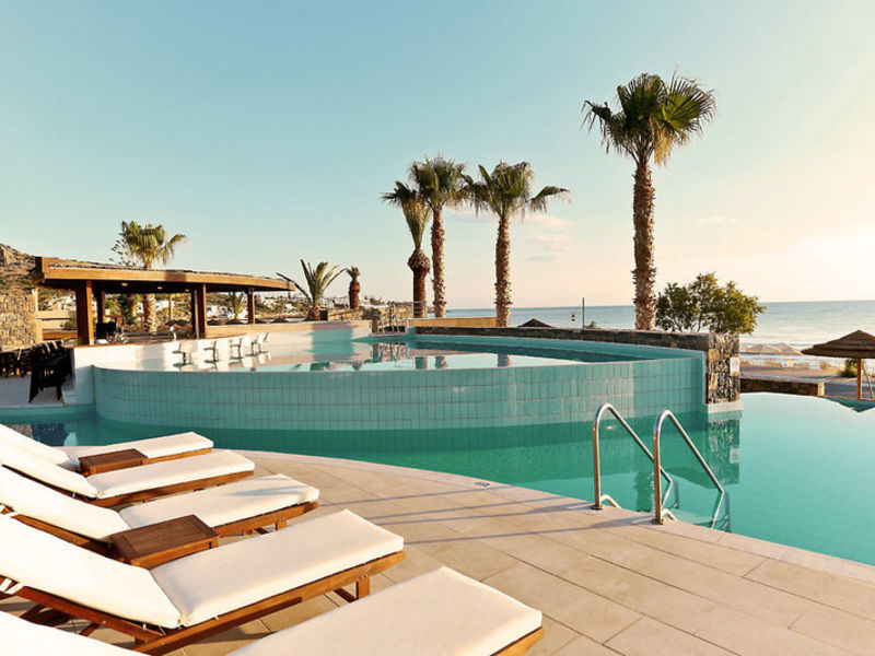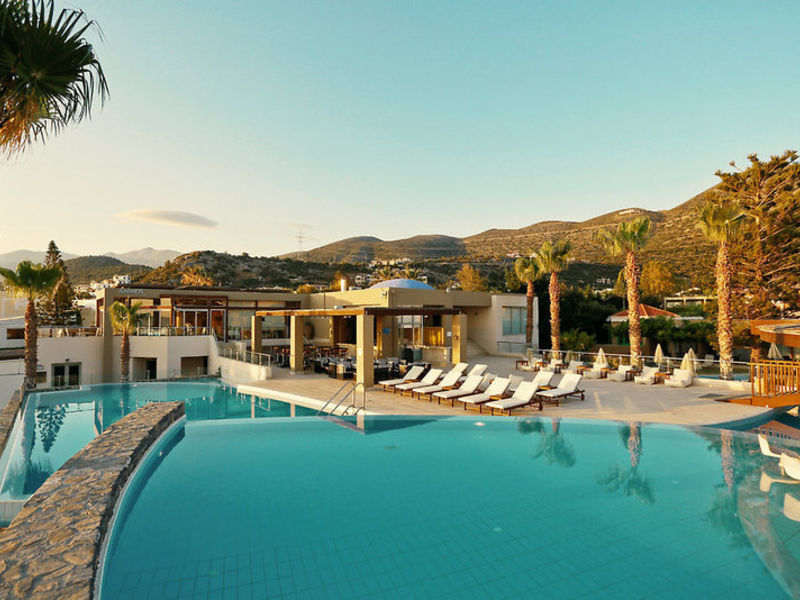 Poloha: Dobře udržovaný hotel je klidný a jen pár metrů od jemně svažující se písečné pláže a světle modré moře a je oddělený od pláže u malého rušného pobřeží. Centrum obce a útulné restaurace a bary jsou vzdálené 50 metrů. Před hotelem je autobusová zastávka pro trasu do Heraklionu a Agios Nikolaos. Doba přenosu je přibližně 35 až 70 minut.