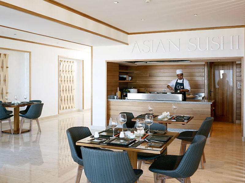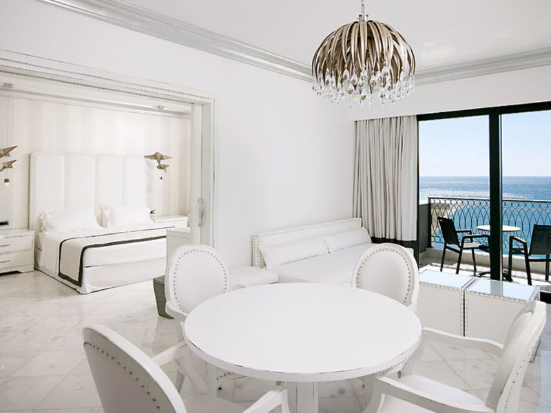Ubytování: Dvoulůžkový pokoj (A1-2A): minibar, čaj a kávovarem, klimatizace, trezor, satelitní LCD TV s mezinárodními kanály a hudebními kanály, WLAN (v ceně), telefon, koupelna s vanou a sprchou, WC, fén, župany , Pantofle a částečně s balkonem na horské straně. Volitelně s výhledem na moře (A1-3B) nebo s terasou, výhledem na moře, individuální bazén (A2-4C), jinak jako A2A, rezervovatelné. Rodinný pokoj (A2-4G): Prostorný, s odnímatelnou spací částí posuvných dveří, jinak A2A. Apartmá typu Junior (A2E) jsou prostornější než dvoulůžkové pokoje a jsou vybavené satelitní LCD TV s DVD přehrávačem v obývacím prostoru, stroj Nespresso a terasa s lehátky a výhledem na moře. Apartmá (A2-4D) s kuchyňským koutem, 2. koupelna se sprchovým koutem, terasa a výhled na moře, jinak A2E.