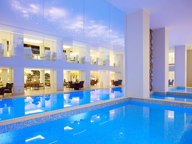 Vybavení Luxusní hotel s 314 bytovými jednotkami, 8 pater, výtahy, lobby s recepcí, TV místnost, WiFi v obchodech (v ceně), 1 hlavní restauraci, 8 tématických restaurací (včetně řecké, italské, mexické a asijské), 5 barů (včetně šampaňského - a vinný bar, přístup k těmto dvěma bary nad 18 let), mini na trhu. Ve venkovním areálu je velký bazén s mořskou vodou. Bazén a pláž. Ležící židle aSlunečníky u bazénu a pláže jsou v ceně, Ručníky na kauci.