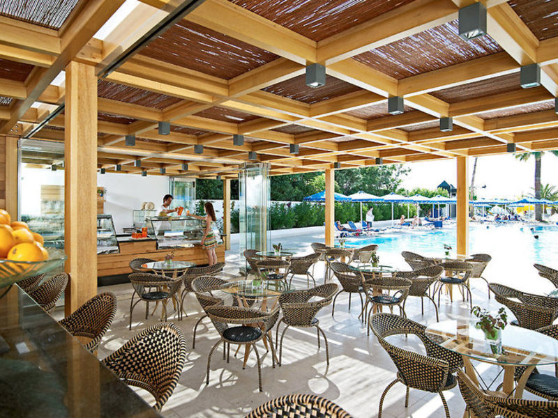 All Inclusive: Všechny pokrmy ve formě bufetu. Místní alkoholické a nealkoholické nápoje od 10-01 hodin. Místní lihoviny u baru u bazénu od 10-24 hodin, stejně jako v "La Toc Bar" od 17-01 hodin a Beach bar od 10-18 hodin. Pozdní nástěnné snídaně až do 10.30 hod. Občerstvení od 10-02 hodin. Espresso, cappuccino a čerstvá pomerančová šťáva na snídani. Zmrzlina a dort od 10-02 hodin. Volitelné obědy a večeře v a la carte restauracích (s rezervací, sushi pouze na oběd, asijské a mexické pouze večer). Neděle tradiční řecké BBQ.