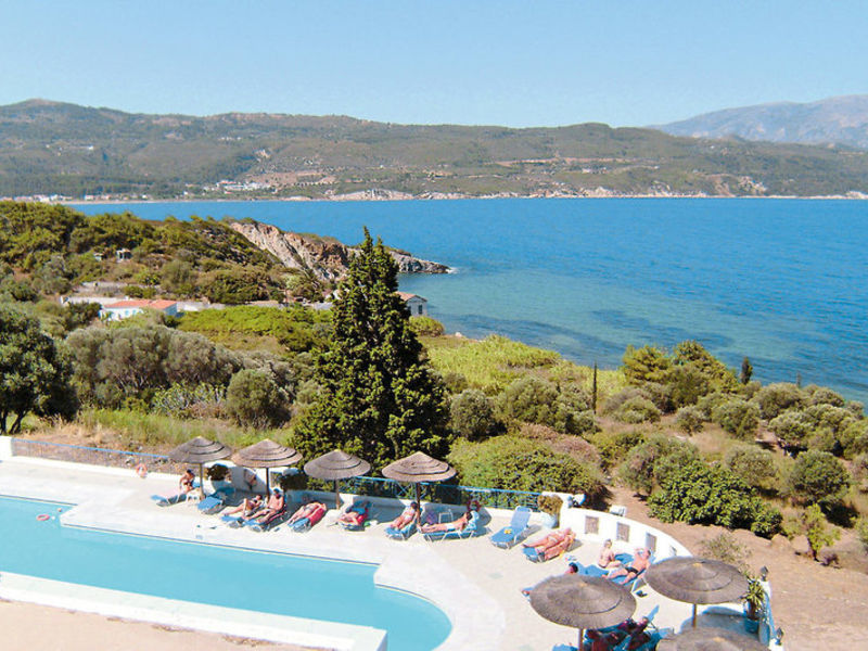 Hotel je postaven na svahu kousek od rušného města Samos v klidné čtvrti Kalami. Má nádherný výhled na záliv z hlavního města ostrova. Písek-oblázkové pláže Gangou je přibližně 600 metrů. Centrum je asi 1,5 km.